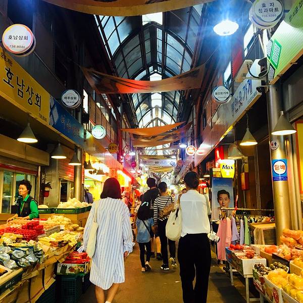 Day 1 终于乘着年假, 到我最爱的韩国旅行了!! 韩国朋友们我回来了~~! 这一次坐的凌晨飞机, 到机场己经是凌3点多, 好累呀... 打个的到酒店去, 马上就倒头大睡了~ 第一天,我的韩国好朋友说带我去韩国的传统市场吃饭...