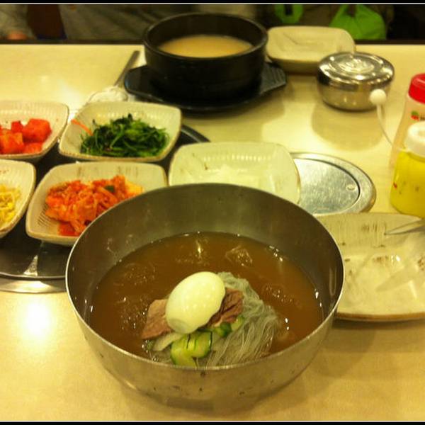 换乘站台找不到,偶心窃喜,没想到“万不得已”的时刻这就到了!从清凉里站出来,眼前一亮,乐天!不为化妆品不为时装,直奔七楼觅食。一份牛肉汤一份冷面,请快点上!
