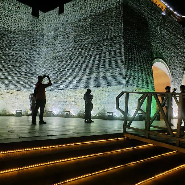 徒步健身运动至火车站古城墙抓拍古城墙夜拍古城墙抓拍