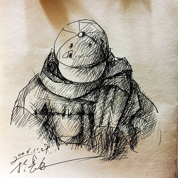 这是他免费为我随手画的我的偶像还有我低头玩手机的素描 展开