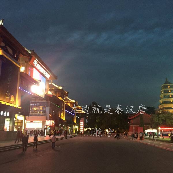 最有特色的是广场楼顶有天幕,就是楼顶有个巨大的LED屏幕,很震撼,会播放清明上河图好多图像...秦汉唐商业广场就在大雁塔广场旁边,里面地下一层有很多小吃,感觉主要是具有陕西特色的小吃,二楼购物,三楼餐厅。