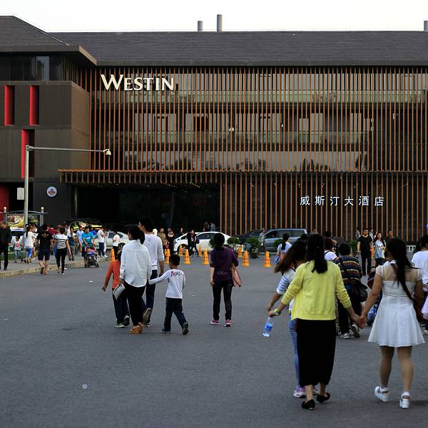 3. 天幕的东边就是大雁塔南广场,天幕南边就是威斯汀酒店,沿着大雁塔南广场三藏法师的雕像一直向南走,一路上都是吃喝的商店,然后会进入大唐不夜城,途中会经过曲江博物馆,美术厅,太平洋影城,音乐厅。
