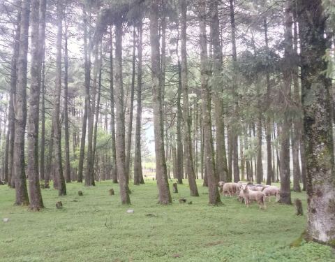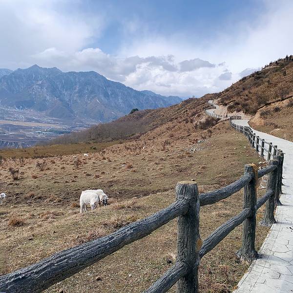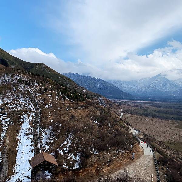 继续往前走便看到一座桥,桥的两边是干涸的水沟,其实也不太像水沟,因为比较奇形异状。而桥的对岸就是雪山,连绵起伏,残留着雪后的美景,此时已经不是很冷了,毕竟徒步了一小段。下面这个景点我要重点介绍,就是孟获城的草甸,是西南规模最大的高山生态草甸。说实话,起初我并不想继续往前走了,因为脚非常的痛了,又有一些高原反应,但是听到路上的游人都在说草甸才是孟获城最大的看点,我也才坚持了下去。然而我真的没有后悔,感觉像来到了中国的坦桑尼亚,苍野大地,这一切就是最好的诠释~如果在这里露营、策马奔腾一定是非常棒的。这一片草甸从未有过任何的人为开发,有着许多红豆杉、珙桐等类的珍稀植被。听说这里是全球为首例的大熊猫易地放归地,运气好的时候还能遇见一两只,然而我运气并不好,哈哈~不过看见牛羊的我已经很满足。其中里面还有一个景点就是红石滩,据说在天气好的时候是非常壮观的,成堆的石头全是红黄色,在其他地方很罕见。由于时间关系,我便没有再往前走,因为徒步是非常远的,红石滩和草甸是两个方向,不过景区内有指示牌,不用担心会走错路。小贴士