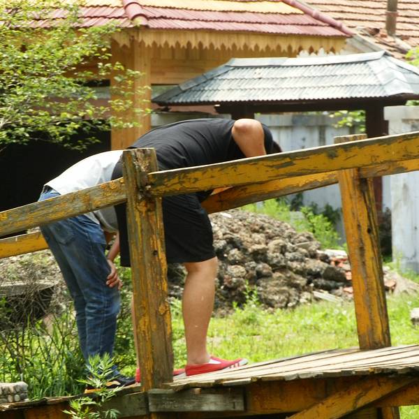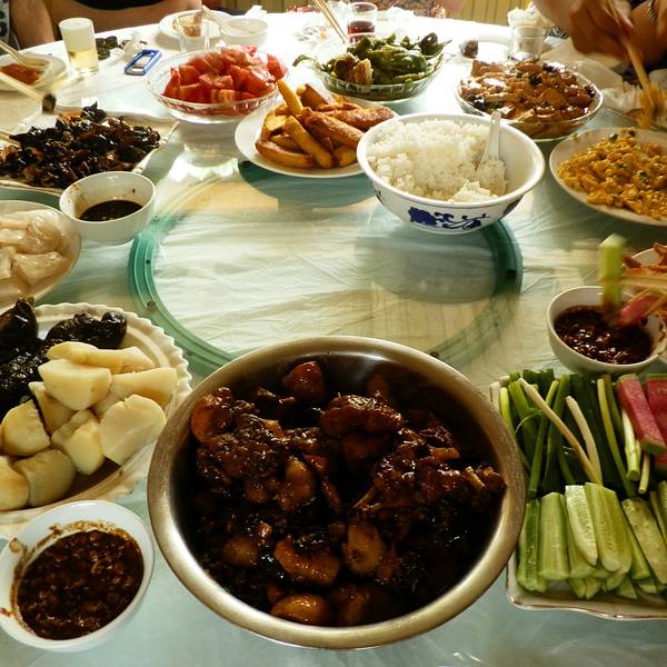 跑了将近五个小时,终于到了本溪,午饭时间到了,哈哈哈 我们选择了一个农家饭庄。男人们可以在这里钓鱼呢。他们的烹饪是在室外的大锅做饭,这也太农家了,贴近自然的感觉。