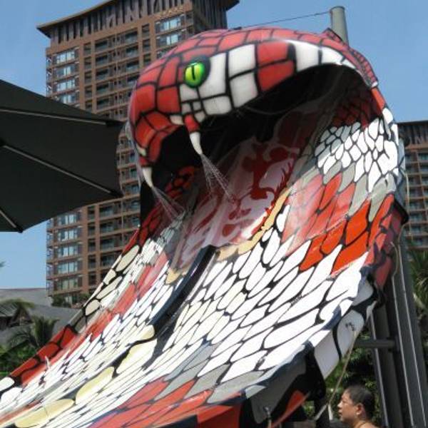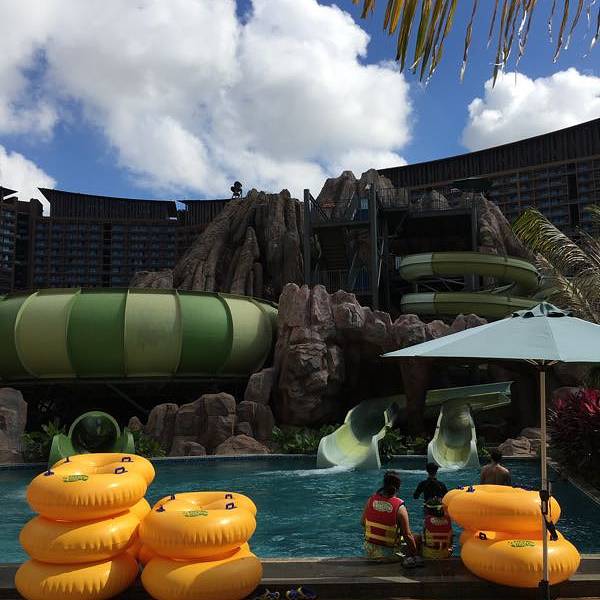这里众多露天戏水设施,来前做好防晒措施。