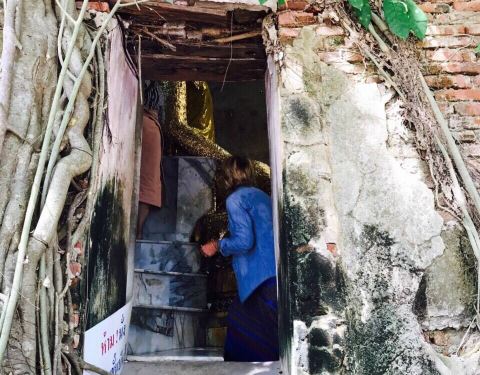 很挤,匆匆忙忙看了一下,就被叫回车上 赶去下一个景点了这个树抱着的佛堂就在安帕瓦水上市场不远的地方,来的都是旅行团,一日游的中国人。很挤,匆匆忙忙看了一下,就被叫回车上 赶去下一个景点了。