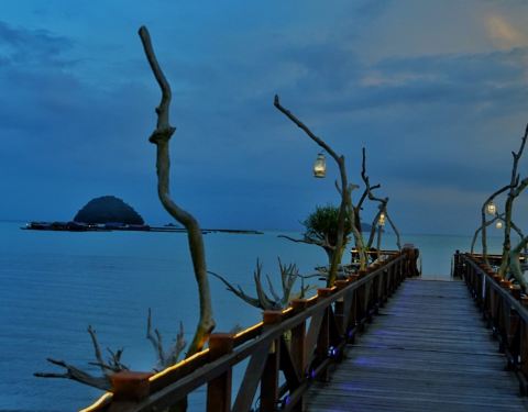 兰卡威鹰海湾海鲜坊由华人达哥创立,位于马来西亚著名旅游岛兰卡威。餐厅建于风景优美的海边,并在海上搭建卡座,环境幽雅,坐在餐厅用餐,吹着海风,让人心情舒畅,心旷神怡。餐厅每个布置,都蕴含着老板达哥的创意跟心思。餐厅自建海上渔排,游客可上渔排自行钓鱼。