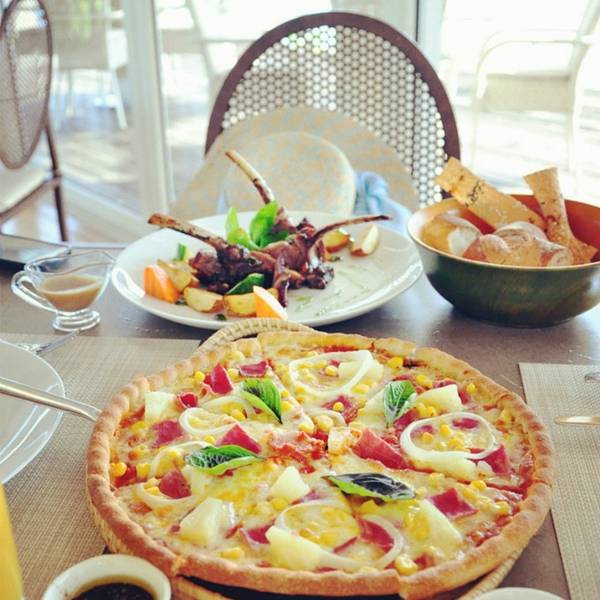 意面做的口感是我在这边吃过的同类餐厅当中最好的~ 不仅很弹,很顺滑,里面的配料也都相当的新鲜,真没有白点这道菜,西红柿的酸酸的,就着一点辣椒的味道,整个口味真的是超级嗨~黑胡椒的味道也稍微有一些哦~奶味也没有落下,我把整个意面都分解开了是不是有点过分?哈哈~ pizza的味道还是比较好的,里面的东西很丰富,从肉到海鲜,一直到蔬菜和小水果,都有~哈哈哈~ 这边的环境真的很好,我们都很喜欢呢~就是菜很容易冷哦~
