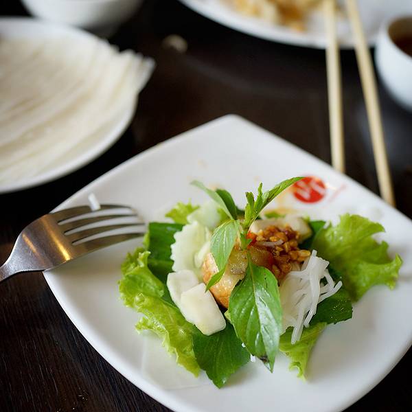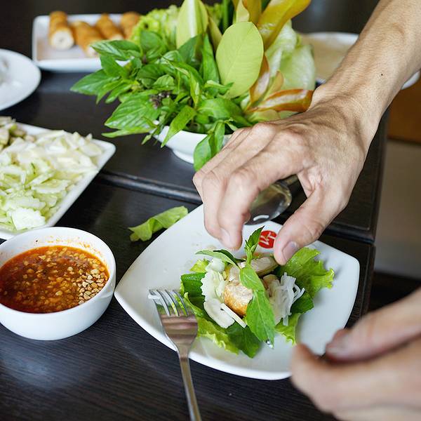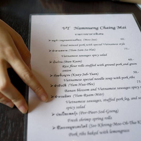 VT Nam Nueng位于湄平河东岸,二楼可以欣赏到河岸风景。作为一家地道的越南菜馆。满眼翠色的菜品令人食指大动。整体价格也非常实在。特色是越南春卷,用米皮、菜叶包着烤肉、蔬果蘸料吃,鲜嫩多汁,口感爽滑。餐厅所使用的原料都是自家农场培育栽种的天然有机食材,每天从廊开的工厂配送到各地的分店,做成各式美味的越南料理。推荐菜色有招牌酸肉(Namnueng)、炸香肠(Sai Krok Tod)和甘蔗虾(Kung Pan Oy ),食材新鲜、清爽不腻,即使天气再热也能引发食欲,而且价格还非常便宜。