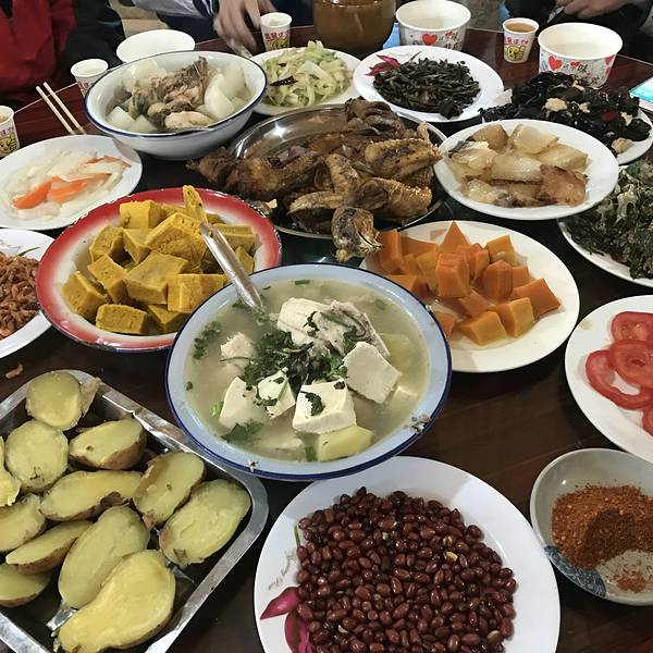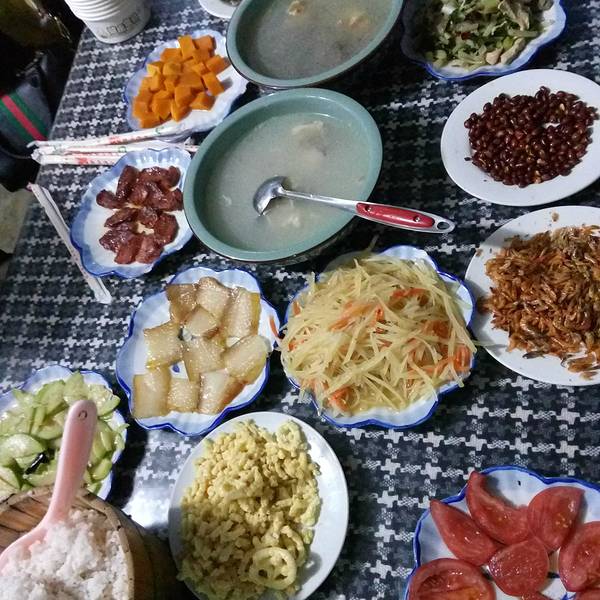 篝火晚会结束后还听到了有人在唱《喜欢你》。不过个人觉得是真的太腻了。晚饭很丰盛,其中还有特色的猪膘肉一番疯狂购物后,我们就回到老板的家吃晚饭了。晚饭很丰盛,其中还有特色的猪膘肉。据说猪膘肉是腌制很久的,猪口中放置一颗银子以保存不腐。不过个人觉得是真的太腻了。西红柿和另一个瓜很甜!甜到我第二天一路...一番疯狂购物后,我们就回到老板的家吃晚饭了。晚饭很丰盛,其中还有特色的猪膘肉。据说猪膘肉是腌制很久的,猪口中放置一颗银子以保存不腐。不过个人觉得是真的太腻了。西红柿和另一个瓜很甜!甜到我第二天一路都想把泸沽湖的土豆 西红柿 苹果当手信带回去了。