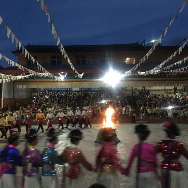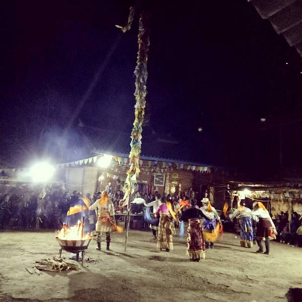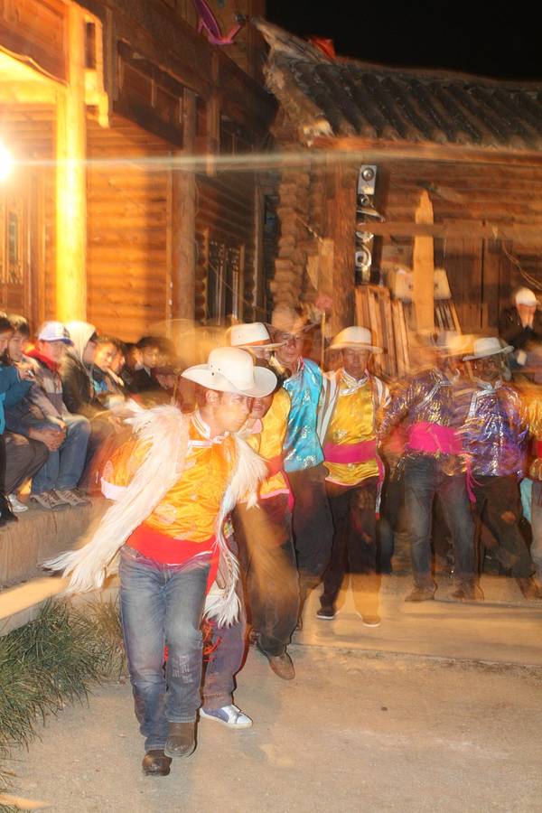 篝火晚会八点开始,村里每户人家都得派出代表去参加~游客很多,我们进去的时候已经座无虚席了在那金家吃晚饭后,喝完了“咣当酒”真是神魂颠倒