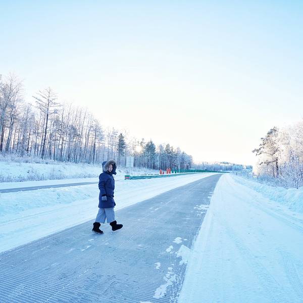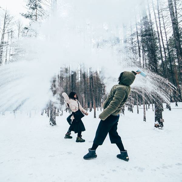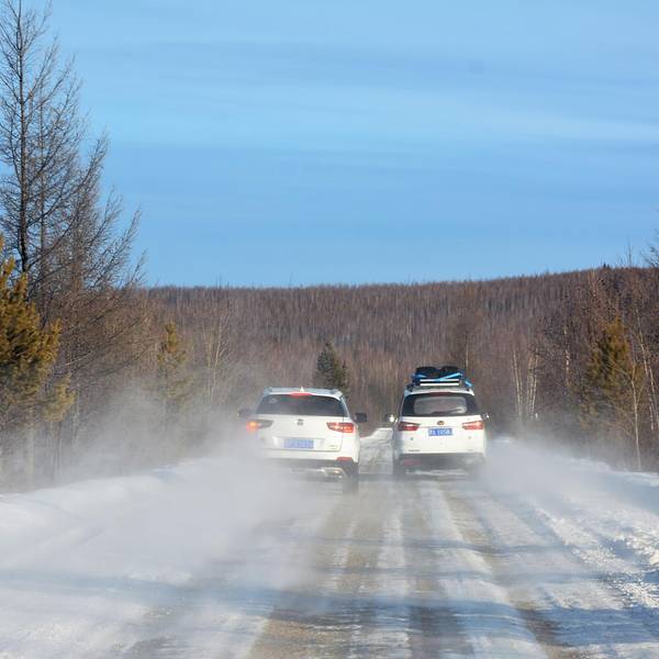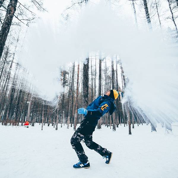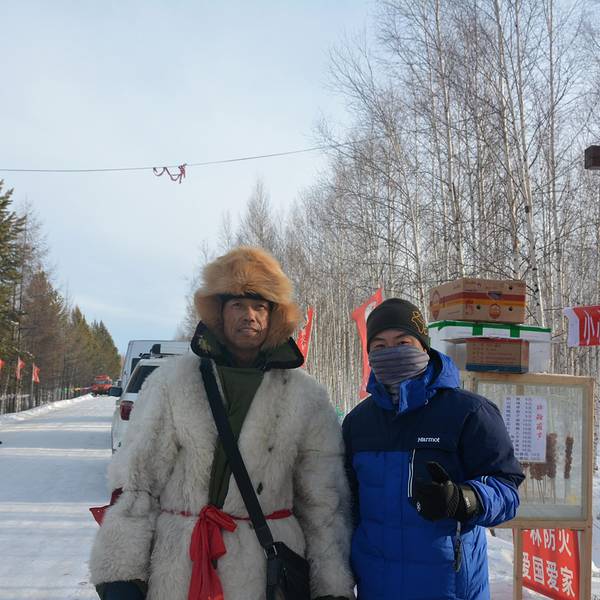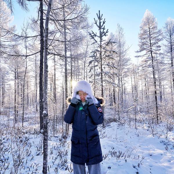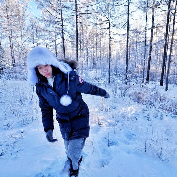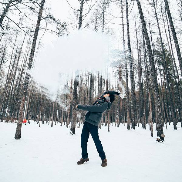泼水速度要很快才会达到很好的效果司机高大哥提着一壶热水带我们去白桦林泼水去了