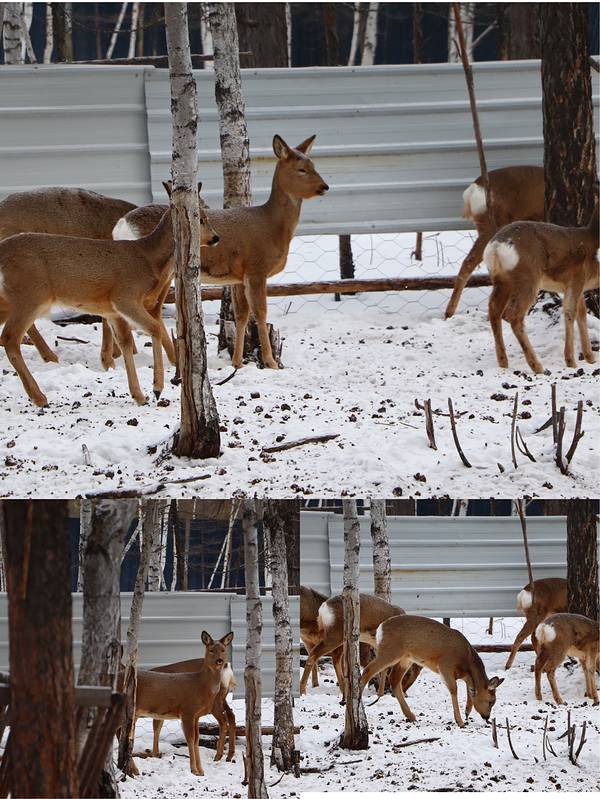 我把相机怼着它拍、它斜眼看着我、大概没有闻到我有吃的、便不理睬我、给我一个潇洒的转身、这家伙、真是可恶又可爱! 旁边还有一个狍子园、只能在外面看、当我把单反从围栏伸进去的时候、一群狍子像是被惊吓到了、猛的跑开、啊哈!它不会以为我端的是枪吧!傻狍子…… 展开