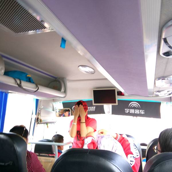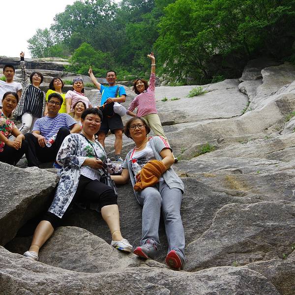 早上7点30分,我们在北京惠新西街南D口集合,上车。于是开始了近4个小时的旅程。途中领队让我们相互认识,活跃气氛。大家有唱歌的,还有表演节目的。更有莫莫领队不顾自己形象,教我们如何百变”魔术头巾“