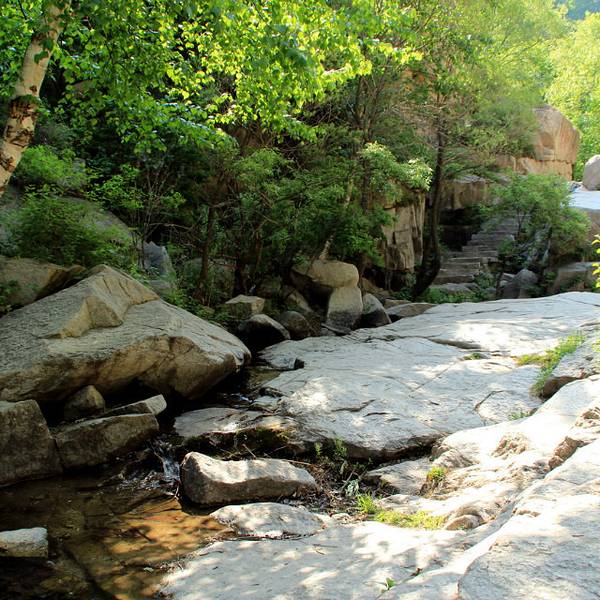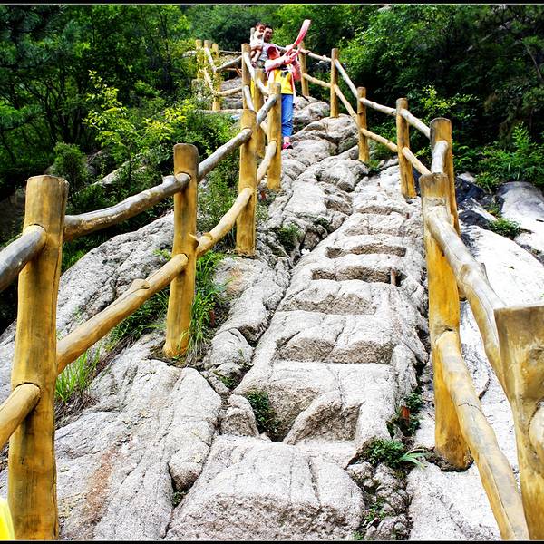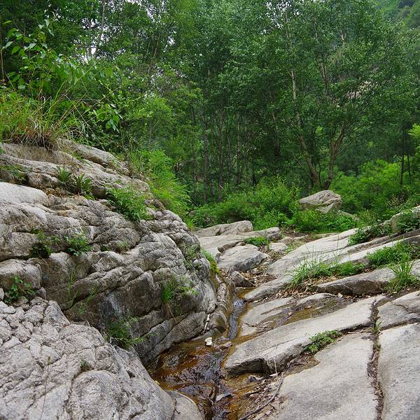 “鱼鳞坡”为花岗岩的节理,在风化时呈层形剥落,形似鱼鳞,谷中溪水漫流,晶莹诱人。刚进大门时,人流比较拥挤,但走进200米后,人流渐渐拉开距离,我也好静静拍些照片了。