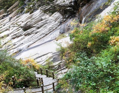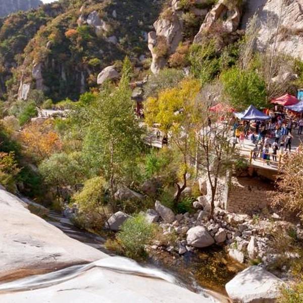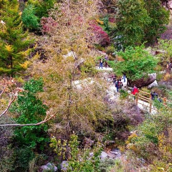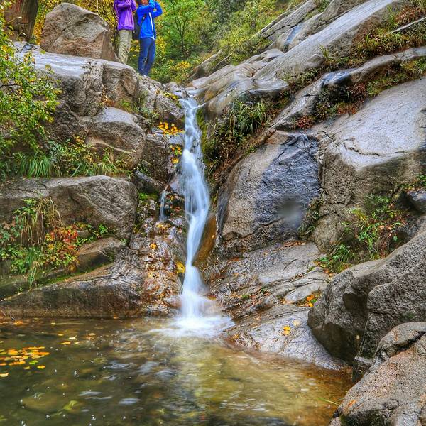 以高山峡谷、溪流瀑布景观为主的十瀑峡是白石山西麓的一条山谷,花岗岩地貌。涞源的十月,山体绿黄交错,总体更显颜色丰富化。十瀑峡的石径路修的还算是可以,地面平整、干净有序,在蜿蜒的丛林中穿越……