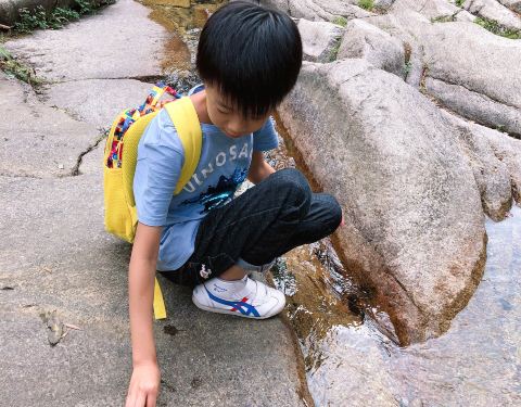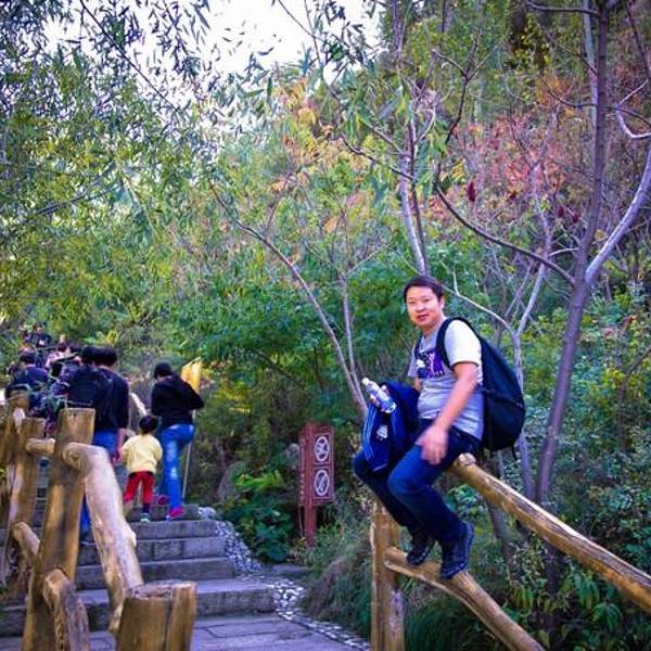 很欣慰的是,几个小孩子斗志昂扬,要去挑战这山巅。崎岖的小山路上,挤满的游客。山路很堵,游客很多,行走很是缓慢,时不时“堵腿”。果然站得高、看得远。高处的风景,往往给人心旷神怡的感觉。能基本看清整个峡谷的风貌。终于爬上来了,约有几百米高度,堵堵停停,倒也不觉得累。三哥早已恭候多时了…游客们散坐在丛林中,在瀑布源头休憩。有木有觉得萌萌哒?阴凉处还是觉得挺凉的,我们决定不再前行(因为前面是土路了),按原路返回。
