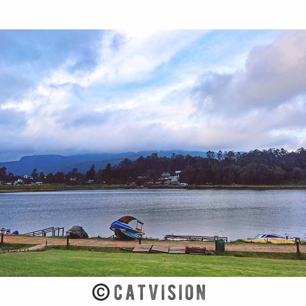 我们的住处就在格雷戈里湖旁的山坡上,便拉着爪子信步向下,没多久便来到湖边,一瞬便爱上眼前的景致不想走了。天空真是无比通透,湖中的水虽然因下雨而变得浑浊但却被映上蓝天,湖水是蓝天的镜子。湖对岸的山坡上是一片碧绿,山间缀着一栋一栋的英式小屋,伫立良久,不住感叹,住在这儿真好啊。格雷戈里湖是努沃勒埃利耶镇中心最大的湖,湖边修建着许多民宿客栈,平时进入景区会收取200卢比的门票。我是从某个迷之位置进去的,起初并不知道要收门票,后来在里面走着时有个人来收门票,才知道原来要买票~