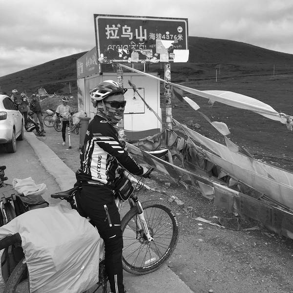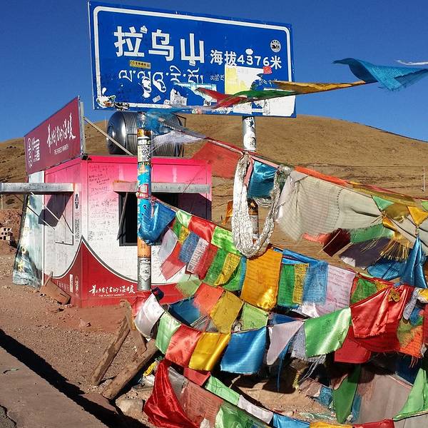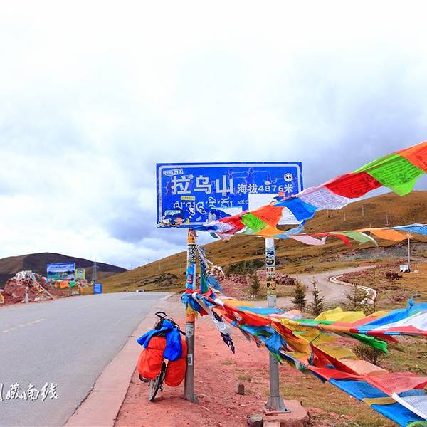 在这里又再一次和老严(红衣男子)相遇了,这个跟梁林他们消失了很久的广东大...今天只有57KM的行程,但是有十几公里是翻越海拔4876M 的拉乌山。幸好是在吃饱喝足的状态下翻山,没多久就上了垭口,也没有觉得很累。