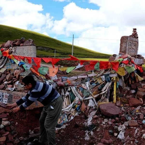 在这里又再一次和老严(红衣男子)相遇了,这个跟梁林他们消失了很久的广东大男孩~从路碑上可以看到,曾经这里的海拔是4868,而如今上涨到了4876这时候的Harry还是小鲜肉啊,到邦达的那天猛然发现Harry晒成了网上那些照片的样子~鼻子额头晒得老黑了从拉乌山下如美的过程中,有一处小拱门,过这里的时候一定记得握紧方向盘,尽管长时间的下坡容易让人瞌睡,我差点手拖把,突如其来的惊吓太TM提神了,不管开什么车,都开不得半点玩笑,随便分个神都有可能出事!一点也不夸张,尽管路再好。下拉乌山吃饱喝足,就该翻十公里坡到达觉巴村,减轻第二天的压力。也许是来自教授家里鸡汤的诱惑,十公里山路一个小时就骑上去了!