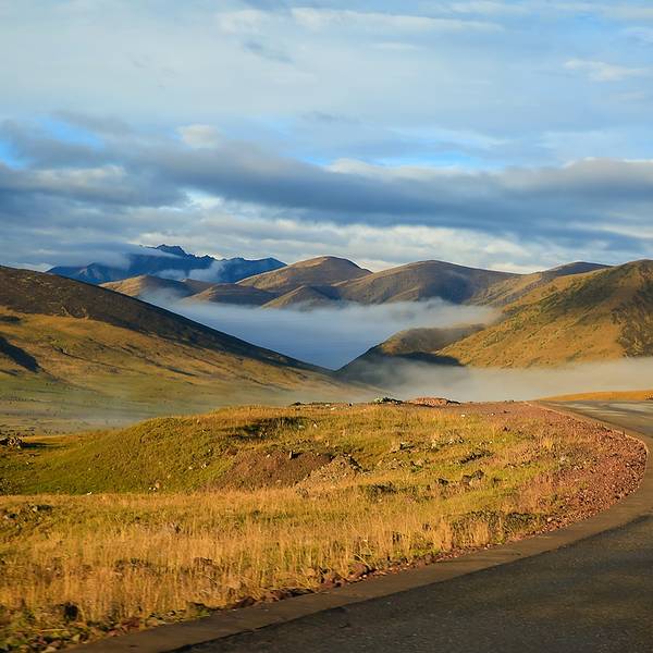 拉乌山,海拔4376米,是进入 西藏 界第二座海拔超过四千米的高山。绿草覆盖,牛羊满坡。它沿袭 芒康 的土壤结构,没有绿草遮盖的地方,跟黄土高原一样,黄土遍地。从拉乌山到竹卡大桥海拔高差近1800米,30多公里连续下山,下坡也变得异常艰难,除了陡峭,一弯接一弯,曲曲折折,要穿过几个藏族村庄,还有塌方下来的石头横行霸道在路中间,我努力把车速控制在30码以内。在山顶有一个观景平台,远远望去,白云下面是群山,远处山腰上有了星星点点的村庄与房屋,山下的草原像华丽的草毯,艳丽且温润,真想躺在上面好好睡睡。 展开