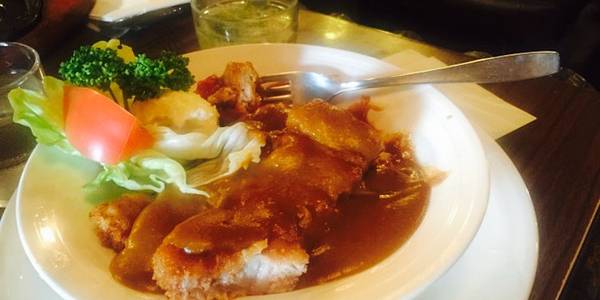 煎好的三文鱼有点硬,口感略差。 咖喱猪排饭不容错过。 加点的布丁也不错。 环境太适合悠闲下午茶了~