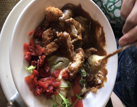 这个圆圆的东西是 汉堡 肉,酱汁很美味,特别好吃。点了他们招牌的几个菜 还有攻略上说一定要点的炸扇贝