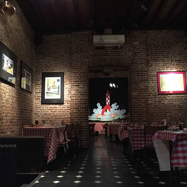 餐厅以漫画为主题,您还能吃到大力水手Popeye汉堡。在它门前有一个足足1.8 米高的丁丁和他的伙伴白雪在等待您的光临。