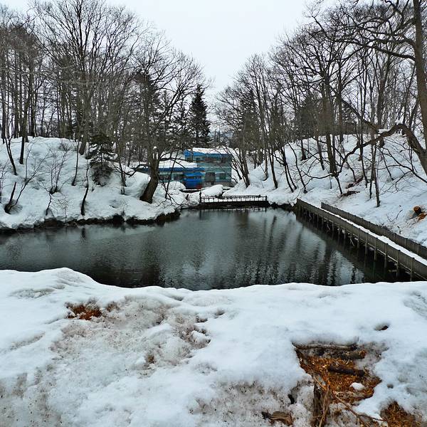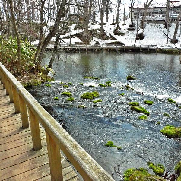 ****************山的一边已是北国之春-万物生***********。山的另外一边竟还是林海雪原,真是一天两个季节,一般是海水一般是火焰的感觉啊!坐在车上向羊蹄山前进,一路的林海雪原的风景很美,层层的积雪之上,是层次分明的白桦林和各种松树展示着春天的复苏,不由使人沉醉在北国之春的风光中。路上不停地经过的小公园,小驿站,小温泉站,小饭馆,都因为苍茫的北国风光而显得很有异国情调。途中不乏商店和驿站。大把的停车位,可以停车歇息,再行上路。名水公园是羊蹄山的代表景点。天然的羊蹄山泉从这儿涌出,清甜甘露,路过的游客们在本地人的带领下纷纷用景区的木勺勺起来品尝。在冰天雪地里,喝着清凉的泉水,感觉很精神,路上疲惫一扫而光。我们勺着喝的水,灌装出来叫做羊蹄山泉,入选日本百选名水之林。山上的小店,卖的北海道生玉米棒子很清甜,没有什么渣,是生吃的,像水果一样。口感跟我们这边的很不同。