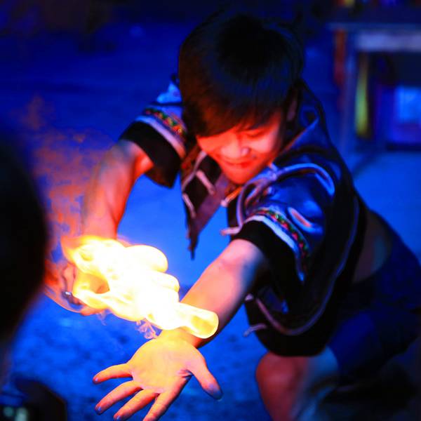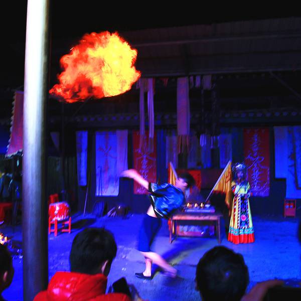 这就是个坑,在舞台上点把火就算篝火晚会了,什么跟什么啊很渣,大家别去。这就是个坑,在舞台上点把火就算篝火晚会了,什么跟什么啊。还卖字画。里面有赶尸、踏火值得一提,但也就是装神弄鬼和魔术,意思不大
