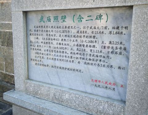 ...前留下来的遗址,武庙照壁加二碑,也是大理的文物了,以前是大理武庙的主要建筑之一啦,市级保护文物大理武庙照壁,我们也是碰巧看到的,这里有以前留下来的遗址,武庙照壁加二碑,也是大理的文物了,以前是大理武庙的主要建筑之一啦,市级保护文物