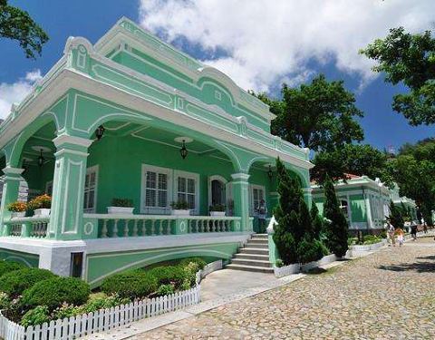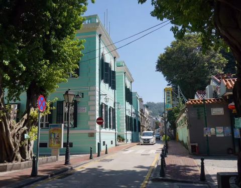 官也街出来就是了,薄荷绿的房子很小清新,边上还有荷花湿地,品种非常多,拍照好地方。很好找的,不用特意找,大三巴去哪吒庙的路上会路过,跟着指示牌走就好。