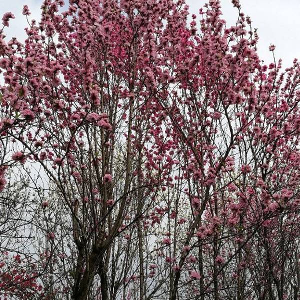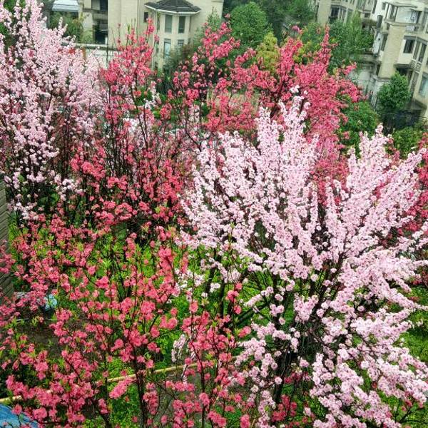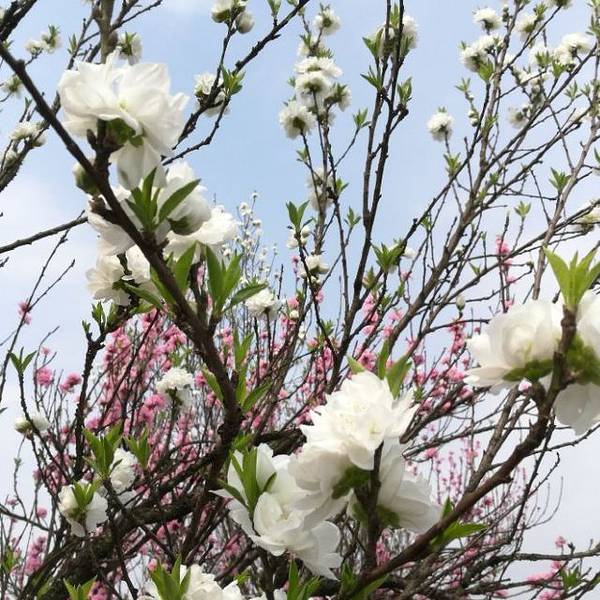 现在桃花盛开,红色,粉色,白色,带上垫子躺在树下晒太阳