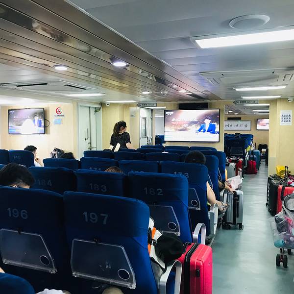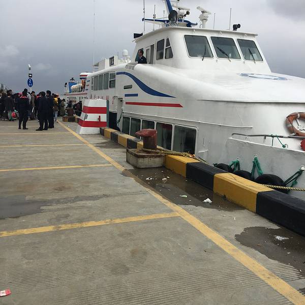 - 这是快艇,只运人,速度比车轮渡快!人可以上去,说是驾驶员没有座位,其实进去随便坐,没人管的!排队啊