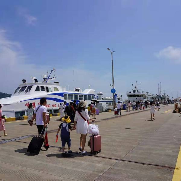 - ...泗的沈家湾码头出发,我们乘坐的加班船为快船40分钟(慢船一般90分钟内)即可抵达嵊泗李柱山码头