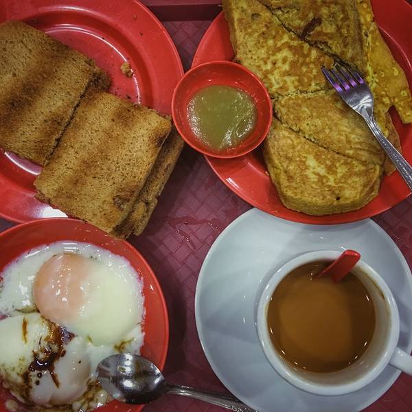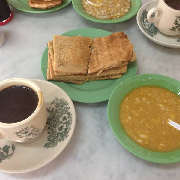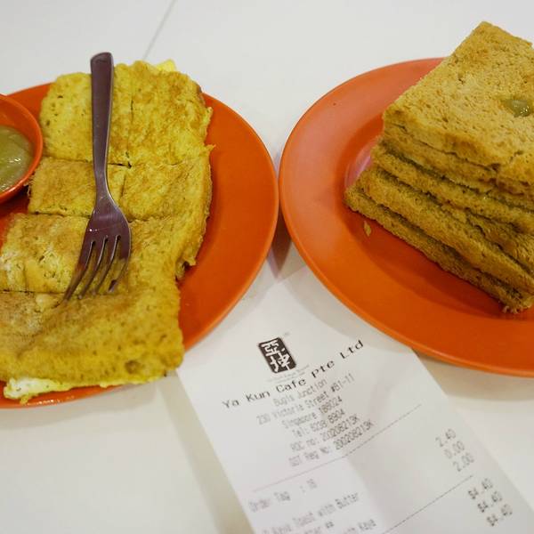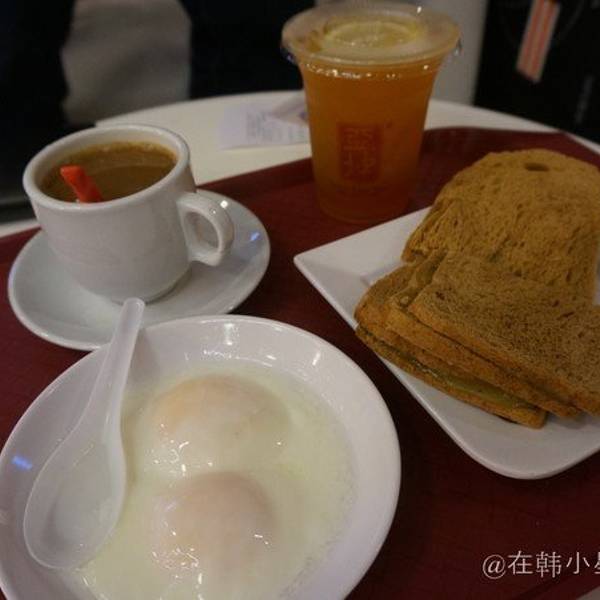 - 这家餐厅最为出名的就是吐司面包套餐,包括两片面包,两颗溏心蛋,一杯咖啡,4.8新币,机场、市区同价