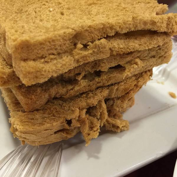 - 我们真的很喜欢咖椰吐司烤的刚刚好微焦的土司和里面夹的奶油及咖椰酱那甜蜜的滋味