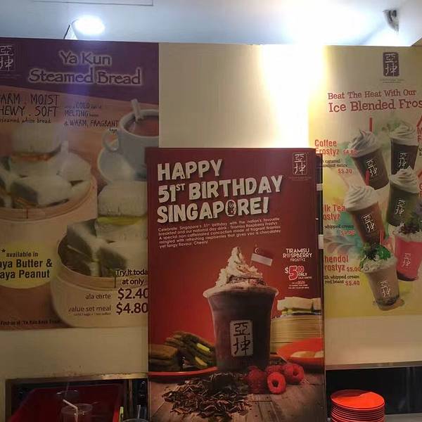 出了关,就该填肚子了呗~新加坡的招牌早餐当属---亚坤和吐司工坊。不过好像亚坤比较出名一点,因为国内比较少,物以稀为贵不是。于是就决定第一餐就献给了亚坤。本来都已经打算吃烤土司面包了,结果点餐的时候小...出了关,就该填肚子了呗~新加坡的招牌早餐当属---亚坤和吐司工坊。不过好像亚坤比较出名一点,因为国内比较少,物以稀为贵不是。于是就决定第一餐就献给了亚坤。本来都已经打算吃烤土司面包了,结果点餐的时候小手一抖,点了个蒸吐司面包…..