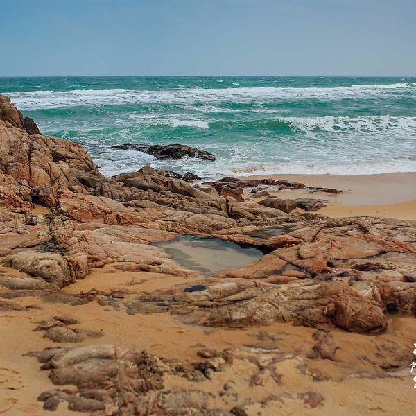 我们游玩的大角是棋子湾最经典最具代表性的一段。这里既有平缓的沙滩,也有嶙峋的礁石。海水清澈见底,沙细滩阔,岸树葱笼。站在礁岩之上,北部湾一望无际,海风拂面,心旷神怡!难得海南还保留了这样一片原生态的海湾。棋子湾礁石海滩棋子湾沙滩上的大海螺棋子湾沙滩沙滩摄影达人 展开