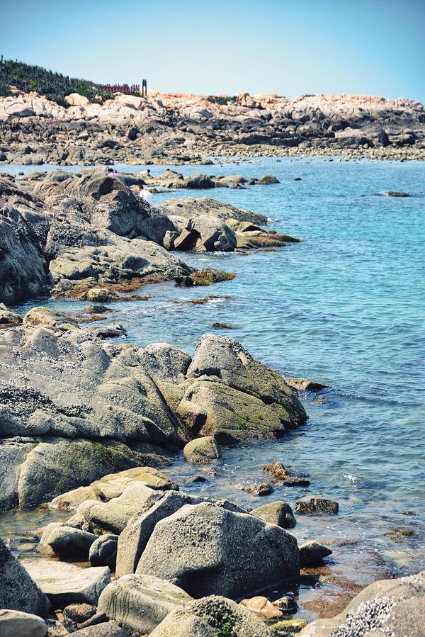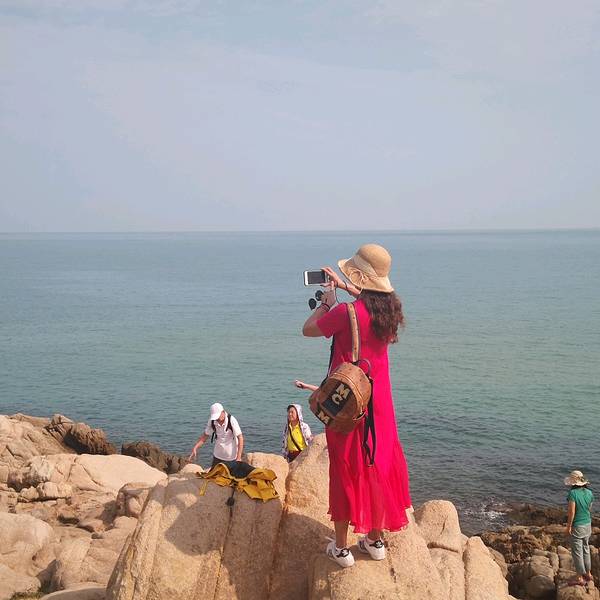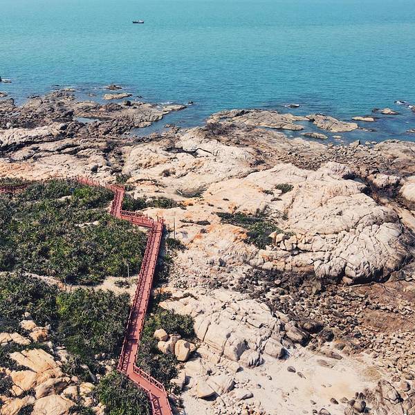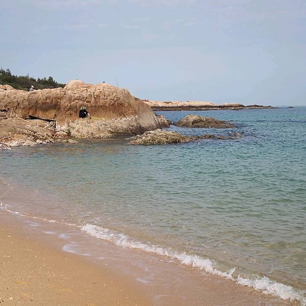 这里有着超美的日落,据说运气好的时候,粉紫色的余晖会一直持续到晚上8点多… 而这样的景色这一次注定和我无缘。阴天的棋子湾海水也泛着蓝光,可以想象晴天来一定会被美哭。 棋子湾主要由三个地方组成,分别为大角、中角和小角。 大角的全称叫 “棋子湾大角公园” ,属于被开发过的旅游景区,所以是三个角里人最多的。