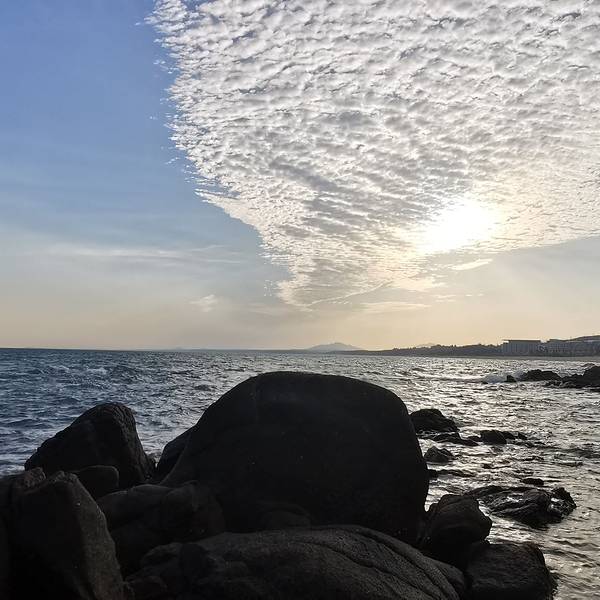 从地图上看,昌江的棋子湾位于北部湾海域,与广阔的东海和层次分明的南海相比,棋子湾的海十分宁静。也许是因为没有滔天巨浪的原因,整个海南西线的海滨基本上都风平浪静。棋子湾和其他海湾相比最大的优势就是游客真的很少,在这里拍照玩耍真的不用担心被打扰。沙滩边上就是恒大的楼盘和酒店,入口处有一个小型停车场和超市,导航直接搜棋子湾跟着导航走就可以到到了。棋子湾周边的配套设施并不多,酒店选择十分有限,如果是吃东西的话得开车去几公里外的昌化镇。不过棋子湾作为 海南 西线上最好的海湾,也还算实至名归,毕竟西线的旅游开发真的太过于缓慢了。我是中午过一点到的棋子湾,太阳很大,光线很烈,但依旧能看到浅海里漂来漂去的水母和沙滩上的海藻贝壳。棋子湾整个海湾氛围三处水湾,分为大角、中角和小角,人们常说的棋子湾通常是指大角,大角就是我拍摄的照片中的这处海湾,大角和中角还有小角都是相邻的,从空中俯瞰,三处水湾通过大片的礁石群相连,开发商已经在大角到小角修筑了木质的步行栈道,可以沿着大角一直走到小角。如果想玩沙滩,那就去大角和中角,如果想拍日落或者看礁石群拍照,就去小角。也许是刚刚三月下旬,沙滩上的沙滩椅不知道是不是被开发商收起来了。棋子湾大角的礁石群十分壮观,跟文昌的石头公园的礁石群不同,风格迥异,各有千秋,虽然是中午阳光最烈最强的时段,但拍起照感觉还是不错的。游客很少,远处三三两两的游客在礁石间赶海拾贝。其实我个人觉得,我来的这个时间段有点早了,大角完全可以等日落之前来,可以在这里拍拍日落。而且大角的特点就是礁石群后有成片成簇的仙人掌,赶上日落前或者避开阳光最强的时段,仙人掌沙滩这些元素还说很适合拍照打卡的。