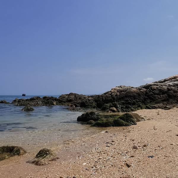 跟大角和中角比起来,小角就没那么容易去了。跟着导航最开始是显示错误的,因为临近沙滩了就没有路了,只能问当地人,当地人说往昌农村的方向走,中途会有通向小角方向的指路牌。小角也是距离昌化镇最近的一处海湾了。