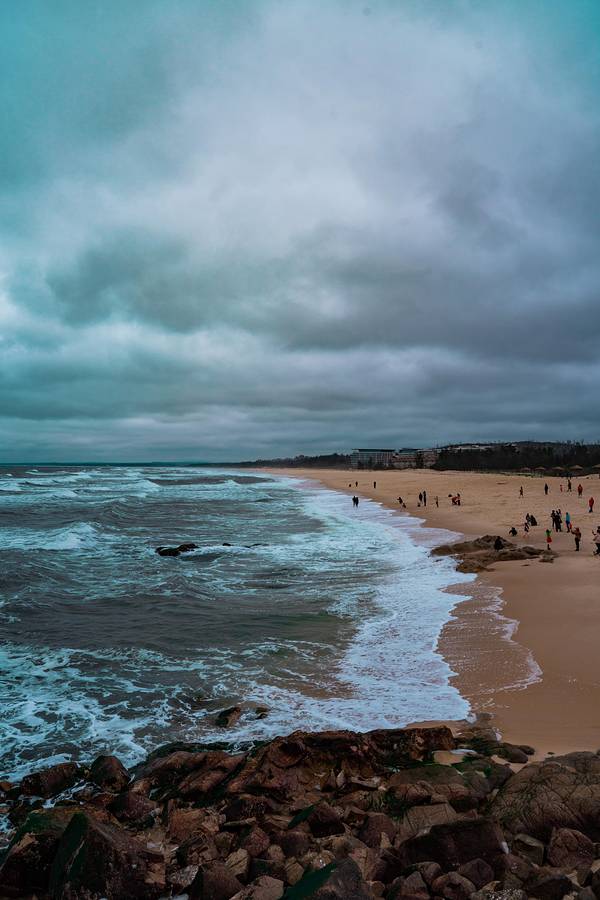 没看见,丁点没看到海水浑浊伴随着着大风大浪,绝了,别说游泳,就在海边散步都有点心慌。咨询了前台,得知中角那边有滑溜溜的石头,看看天,还是决定出发。