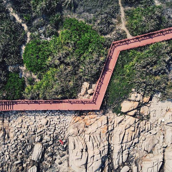 大角的全称叫 “棋子湾大角公园” ,属于被开发过的旅游景区,所以是三个角里人最多的。入口处有独立的停车场、洗手间和一些卖吃的小商铺。海边是被浪花常年累月拍打出的自然岩石景观,往深处走还有一个景观木栈道。大片的仙人掌在阳光下也是旅拍的热点。风很大,浪很急,大家都只能远距离的欣赏,没有办法下海。海滩后面的房子也属于恒大的产业,打造了一片商业广场,不过里面并没有商铺入住。中角可以导航 “中角海滩” ,这里人很少,大大小小的岩石布满海边,很原始空旷。