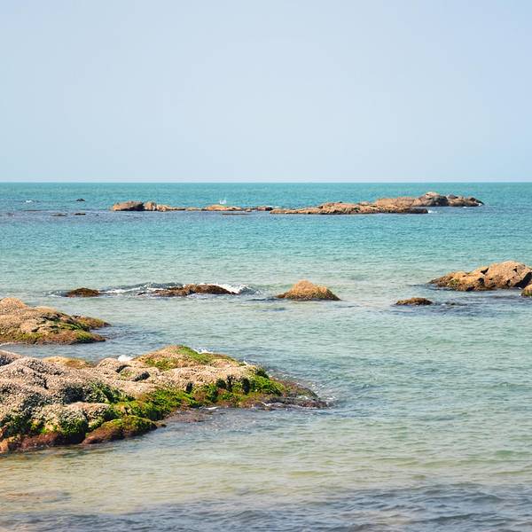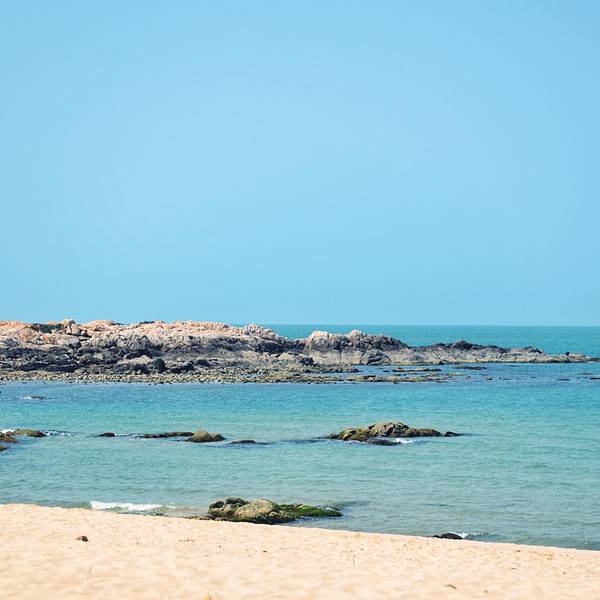 棋子湾是海南昌江黎族自治县的一处海岸,这里既有平缓沙滩,也有怪石嶙峋的礁石海滩,其中还分布着形态各异的棋子石,景色非常奇特。棋子湾人少清净,海水清澈见底,海沙细软,且与礁石海滩相连,沿着海岸线漫步,可谓是移步换景,十分有意思。礁石海滩上怪石嶙峋,犹如“海边石林”一般壮美。其中的棋子篮是海滩上棋子石为集中的景点,这里遍布形态各异的彩色卵石,有白色、土红色等,在海水的冲刷下显得晶莹剔透,十分独特。