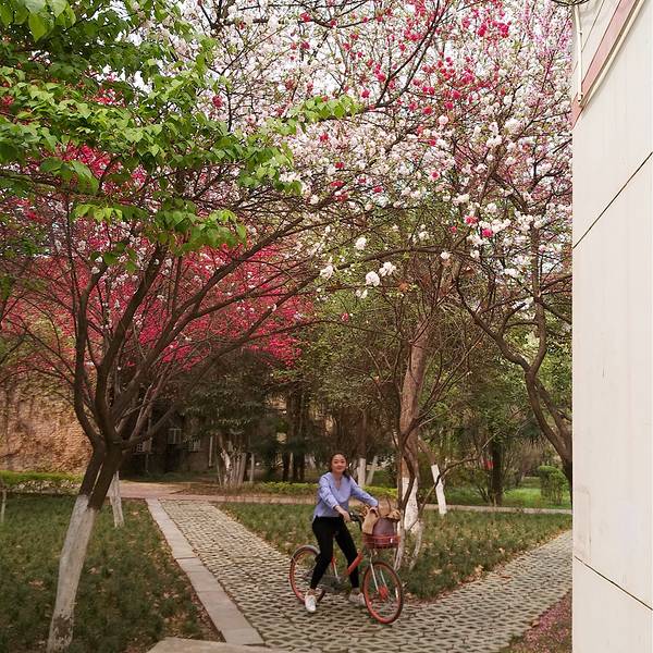 这绝对是我们懒觉起床,骑自行车瞎溜达的又一新发现这绝对是我们懒觉起床,骑自行车瞎溜达的又一新发现!本来我们想骑车去动车站的,时间还早,顺便再看看有没有什么好吃的,结果……又碰上了好多开花的树!