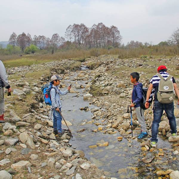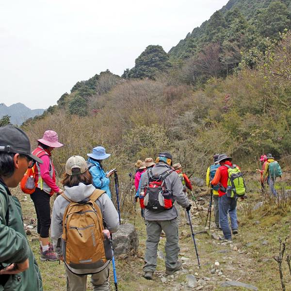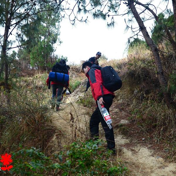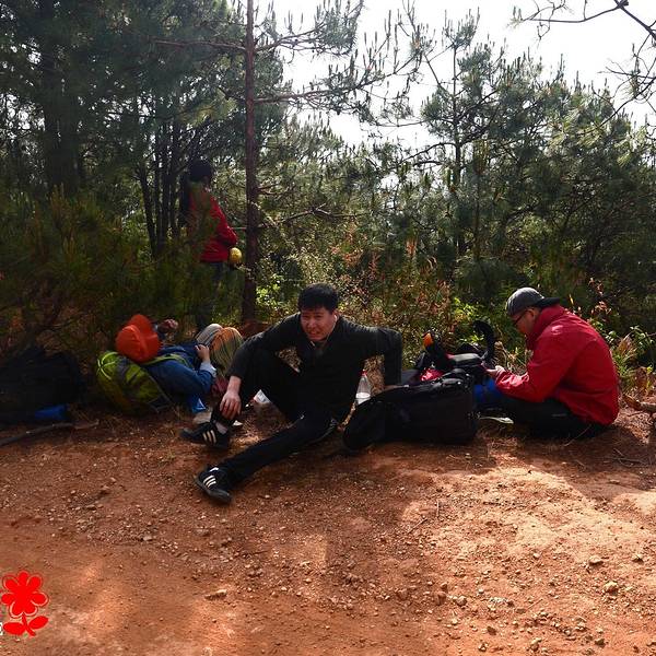 午饭后就开始往药材场左前方前进,目的地是龙潭。不过这个季节的龙潭因为没有水,只是湿地的感觉,目测还是有水的时候会比较漂亮,不过这时坐在这里赏一赏山上的杜鹃还是不错的。由于往回的路走错了,多走了一个多小时才回来。