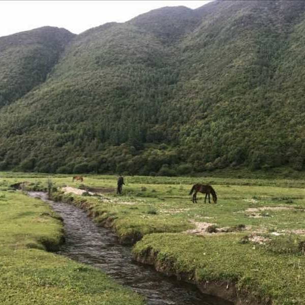 第二天从大花甸坝出发,经过小花甸坝,最后到周城下。中间花了整整6个小时的徒步时间。