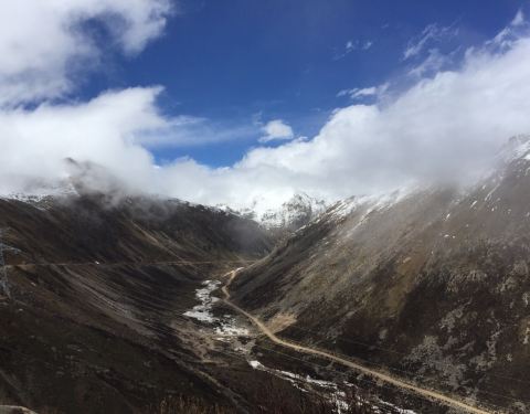 到德格是下午,天色不算太晚,若要平时团长肯定是要赶路的,只是前面就要翻雀儿山心里多少没底,参观完(关了门的)印经院后还是住了下来。晚上吃饭,店里的人都在讨论雀儿山隧道通车的事,一打听,说是县里来了好多领导,明天十点雀儿山剪彩。回到酒店,酒店里也传得沸沸扬扬。领导就住在我们隔壁酒店,隧道确实修得差不多了,看起来是真的。这下轮到我们纠结了,有人喜欢冒险,有人担心安全,到第二天早上起床都没商量好到底咋走。门口停了一排车,果然都是领导和随从,互相客气道别把路都堵完了。我溜过去,抓了一个面善的问:你们今天是去给雀儿山隧道剪裁吗?对方回答:我们不是,其他人是不是我也不知道。算了,管他啦,走一步看一步吧。我们跟着大队伍出发,不一会就甩开了他们。北线虽说以文化取胜,沿途风光也不输南线。因为车少,我觉反倒比南线更好。恰好十点钟到了山脚,一看隧道口拦着,里面工人忙忙碌碌,也没什么准备,一点不像今天要通车的样子,团长高高兴兴拐上山。毕竟是国道,路况再差也有限,不管是路的宽度还是路烂的程度,在我们走的这路都算不得什么。要说险,一是山高弯道多,二是大卡车多错车难。一路都没遇到对头车,一爬山,对面全是大卡车。仔细一想明白了,甘孜的大车也是等着一早翻山呢,可不就是刚好在中途的雀儿山相遇嘛。上山错车的时候我们紧紧贴住山壁,看着迎面而来的卡车摇摇晃晃从悬崖边驶过,不禁为他们捏好几把汗。下山时就轮到我们走悬崖边了,这时反倒觉得路边还有不少腾挪空间。雀儿山垭口海拔标称5050米,比南线的米拉山垭口(5013米)高几十米,实际测量都不到五千。相机能拍到的弯道很少,我看过别人航拍的图片,雪山下复杂的弯路,还是壮观的。一路走走停停,花了一个半小时翻山,比我事先设想的要容易得多。山路会车。我们走完这趟不久,赶在国庆前,雀儿山隧道正式通车了。 展开