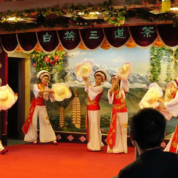在船上的每一段行程都有不同的体验,例如第一段行程就是拍摄免费的照片纪念品;第二段行程会有导游为大家做讲解;第三段行程美丽的白族姑娘和热情洋溢的小伙们,用载歌载舞的方式表达了对游客们到来的欢迎,可以让游客体验到白族人的热情好客,以及少数民族独有的风情。印象最深刻的是“白族三道茶”,从第一道茶到第三道茶的口味分别是:苦味、甜味和回味,按照这样的顺序喝下,正如同我们的人生一般,要先有苦,才会有甜,最后再来回味这一生的时候,不再会有遗憾。
